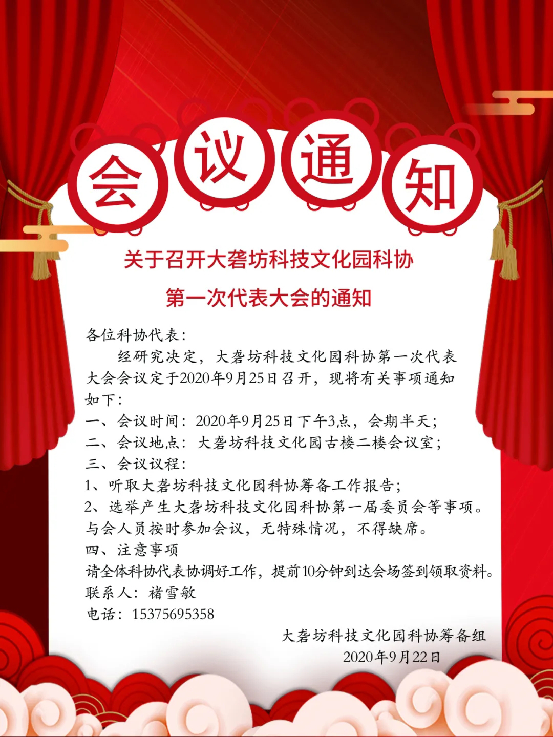關(guān)于召開大礱坊科技文化園科協(xié)第一次代表大會(huì)的通知