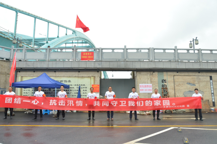 在防汛Ⅱ級響應當日,接區(qū)委、大礱坊街道黨工委統(tǒng)一部署,大礱坊科技文化園極速響應,落實園區(qū)袁澤橋防洪閘點24小時值守任務。迅速成立防汛工作領(lǐng)導小組,下設(shè)防汛辦公室,對接各級防汛指揮部門,積極落實防汛責任與義務。